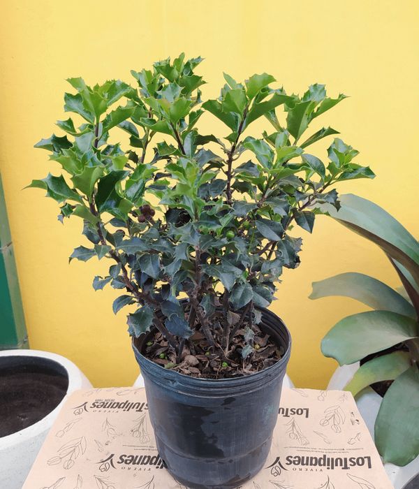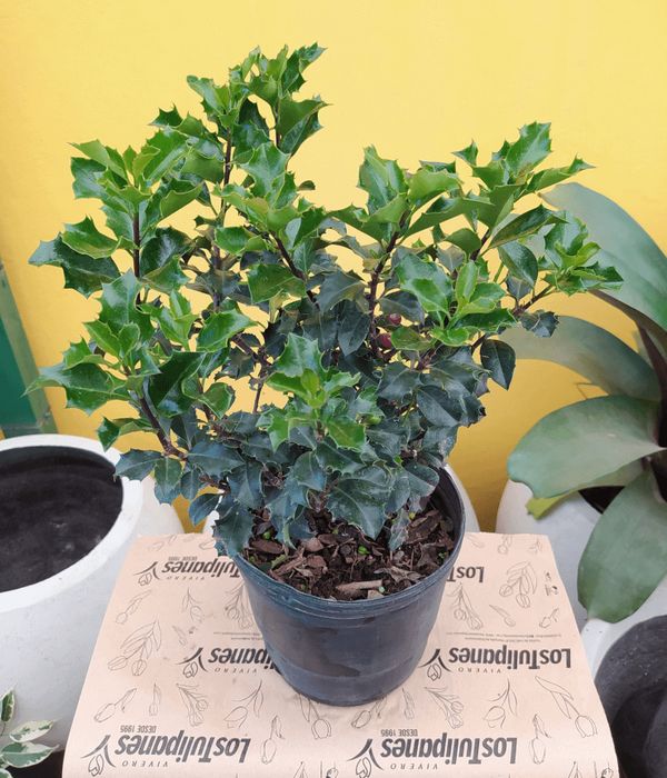 Es una planta siempre verde con hojas punzantes y con un fruto característico de color rojo. Muy utilizada en decoraciones navideñas